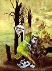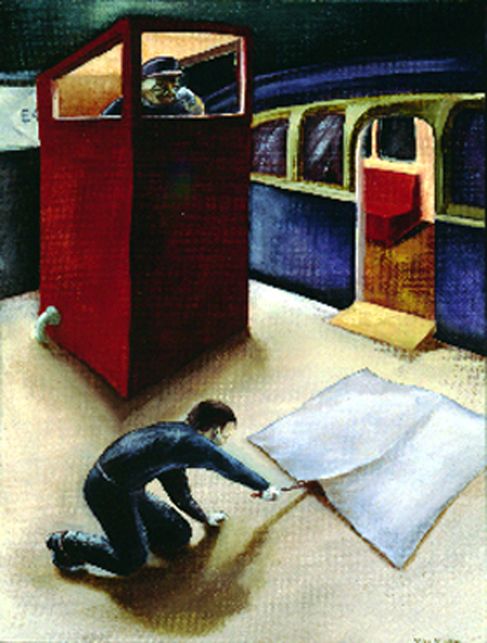 "Analyzing my own art is difficult, but I think that the dreamlike images tend to deal with confined spaces, which contain certain characters that reach out to one another, yet do not quite succeed in meeting. Most of the figures are somewhat lost in space. All of this probably reflects my life quests."