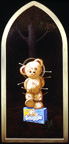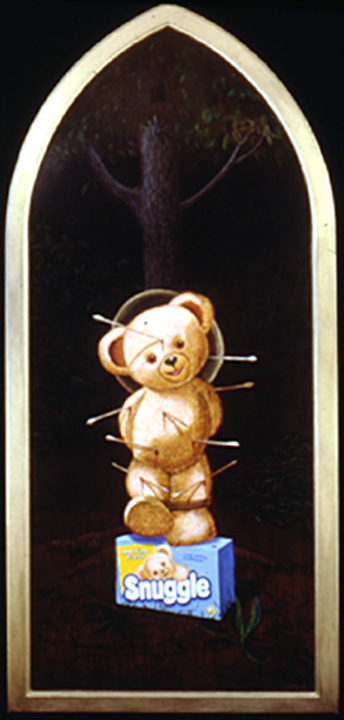 "...I've concentrated on the role played by corporate icons as tools for modern advertising. Many people may not realize that these advertising symbols affect more viscerally and with more immediacy than traditional religious stories. Advertising and religion are only two areas of culture that inspires devotion, but there are many others, such as sports, politics, music, art, literature, and fashion. For many, including myself, this is an unconcious process--something people soak up through the culture they live in. I merely make it more conscious."