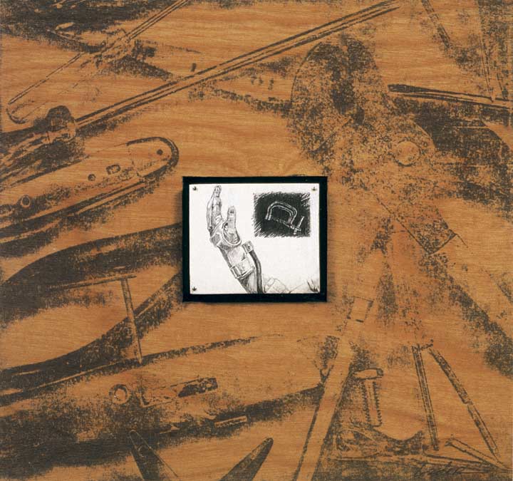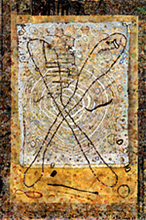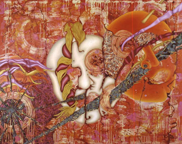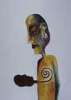 "The artistic form I have created are images that communicate a personal commentary on an issue or question in my mind. These shapes are then arranged in a pictorial space using the human form as the main vehicle for my expression. I use iconic and metaphoric symbolism, which echo the narrative expressed by the use of space and the human form."