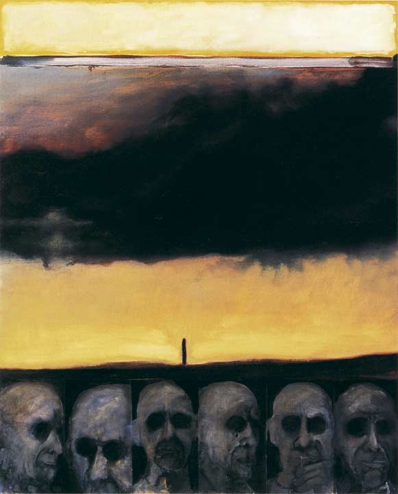 "The figures in my pantings are at once self-portraits, and at the same time, portraits of anyone. I believe that there is a place between thought and physical action where an element of chaos or accident occurs. It is through an investigation of this accident in conjunction with intellectual processes that new possibilities of meaning or understanding may be found."