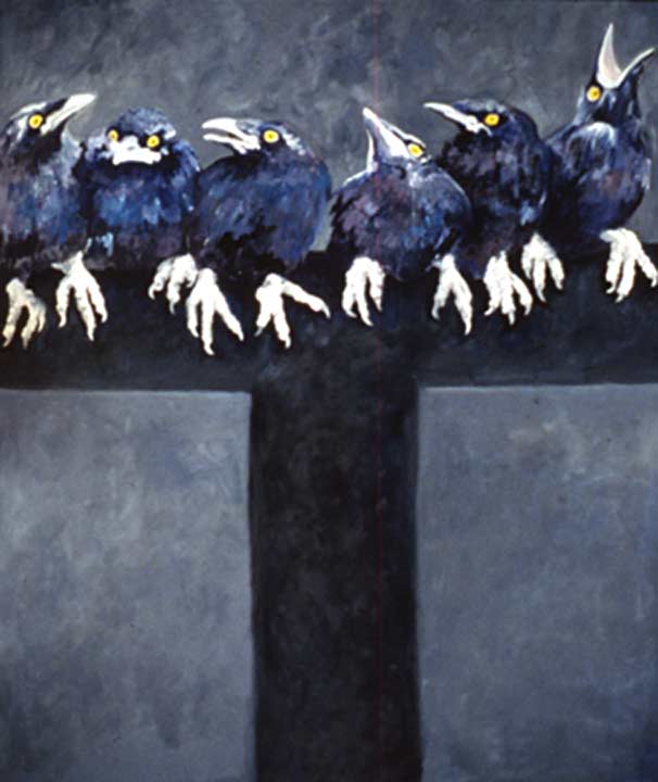 "I enjoy exploring the strange or unusual in the commonplace, and combining the real and the imaginary. Birds have flown in and out of my paintings over the years, and seem to be important residents in my work."