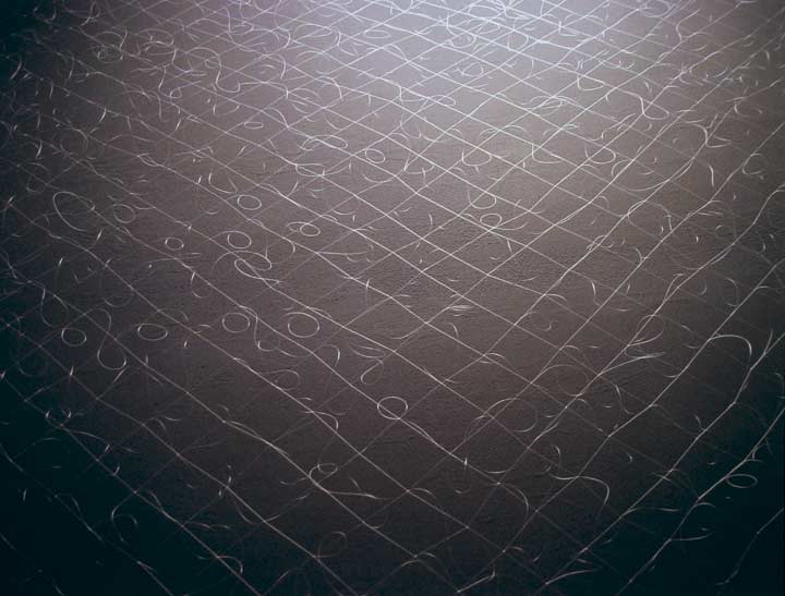 "Handwritten or threaded lines filling a surface are innately imperfect. Imperfections allow us to connect with others and recognize common patterns."