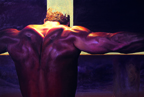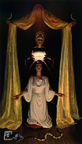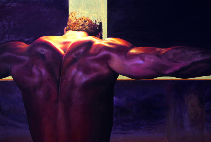 The story is inspired by Saviour Savings, oil, 23k gold leaf on canvas, by Renee McGinnis, a painting featured in Living Artists.