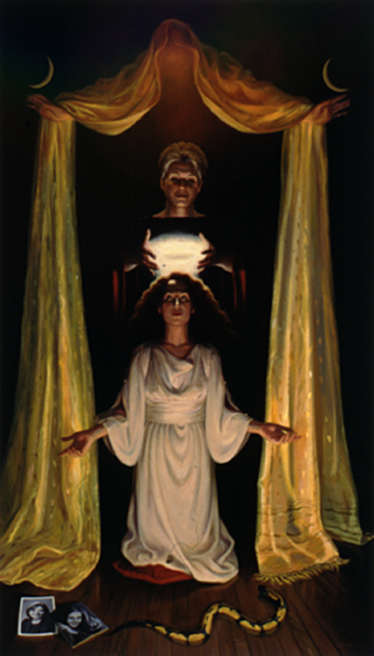 The story is inspired by Cross-dressing Draft Resister Who Chanted Hare Krishna for 7 Years, pastel on paper by Eric Semelroth, a painting featured in Art Scene: Chicago 2000.